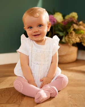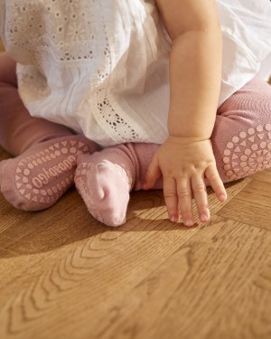 Die Krabbelstrumpfhose Dusty Rose von GoBabyGo hat speziell entworfene Gumminoppen auf den Knien, unter den Füßen und auf den Zehen – Krabbelspaß garantiert. Die anfänglichen Krabbelversuche oder Laufversuche werden nicht durch Rutschen gestört.