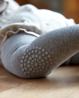 GoBabyGo entwirft rutschfeste Socken für aktive Kinder. Mit speziell entwickelten Gumminoppen an den Knien, unter den Füßen und auf den Zehen werden die motorischen Fähigkeiten und das Gleichgewicht des Kindes beim Krabbeln und Gehen gestärkt. Die Gumminoppen helfen dabei, dass das Kind nicht auf glatten Böden rutscht. Es ist dadurch beweglicher und mutiger.