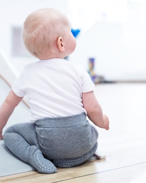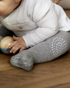Die Krabbelstrumpfhose Grey Melange von GoBabyGo hat speziell entworfene Gumminoppen auf den Knien, unter den Füßen und auf den Zehen – Krabbelspaß garantiert. Die anfänglichen Krabbelversuche oder Laufversuche werden nicht durch Rutschen gestört.
