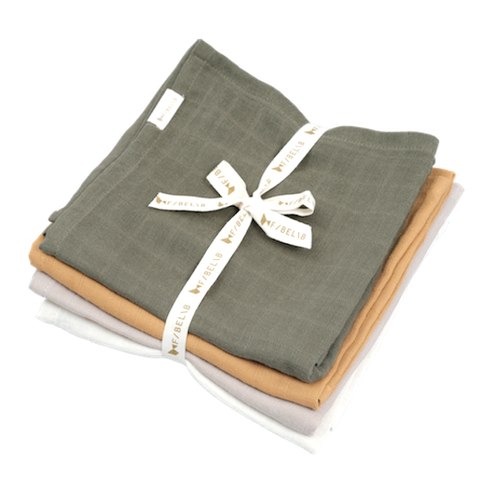 Mulltücher „Olive Garden“ im 4er Pack von Fabelab. Die superweichen und biologischen Musselintücher eignen sich für alle Gelegenheiten rund ums Baby. Egal ob in der Wickeltasche, neben dem Wickeltisch oder beim Essen. Der Stoff der Mulltücher ist besonders atmungsaktiv und wird nach jedem Waschen immer kuscheliger und weicher.