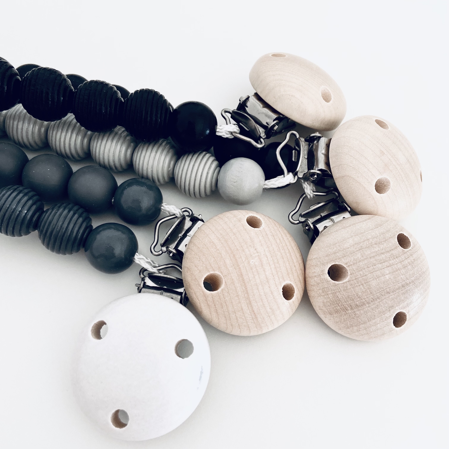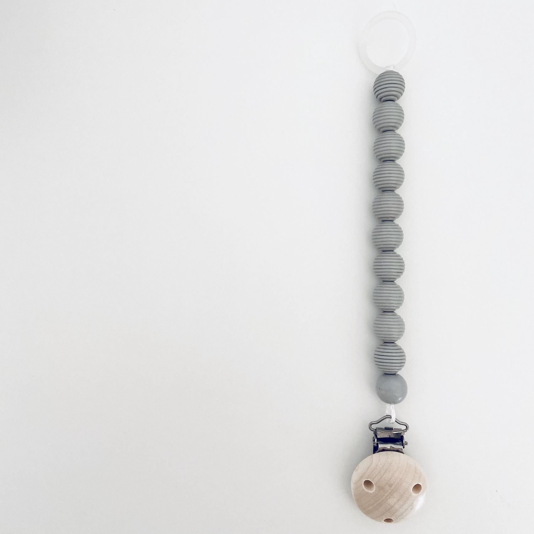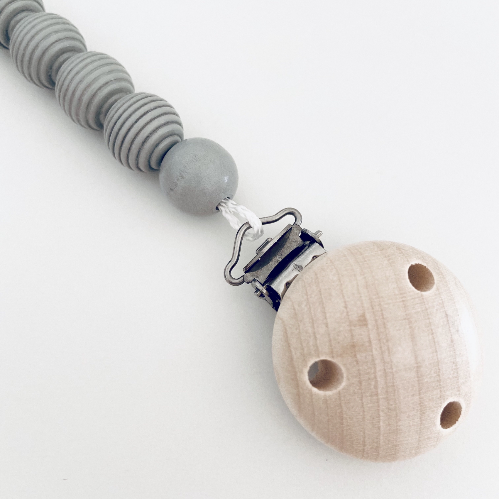 Die Schnullerkette by SOE Holz hellgrau ist ein schöner, schlichter und vor allem praktischer Begleiter.